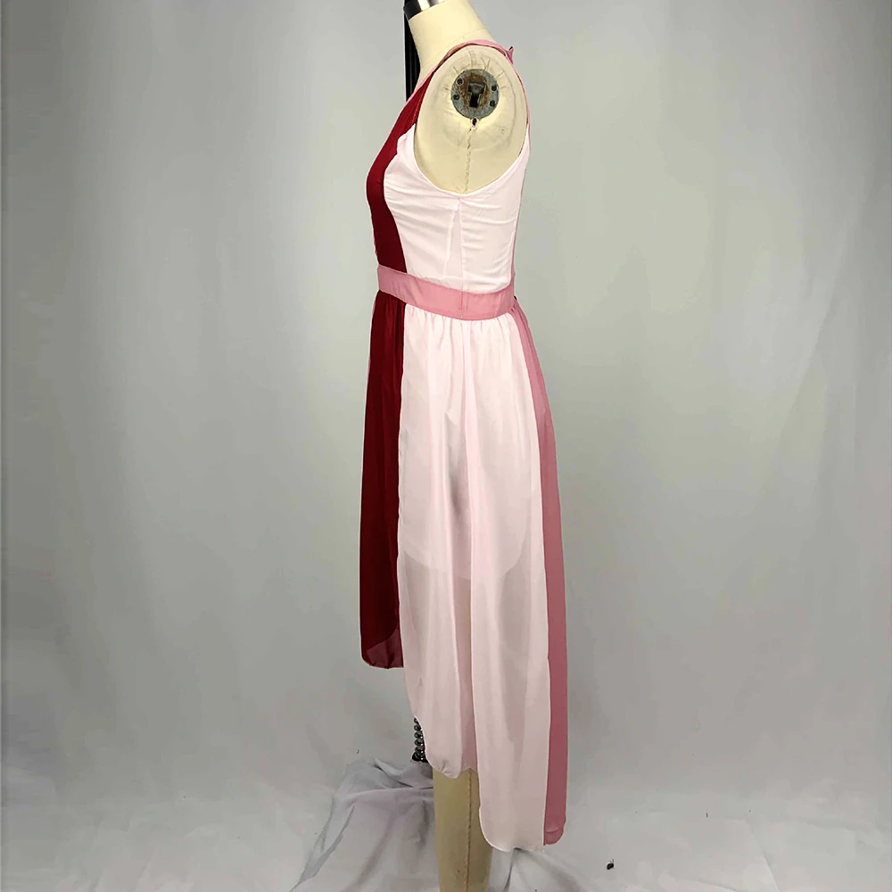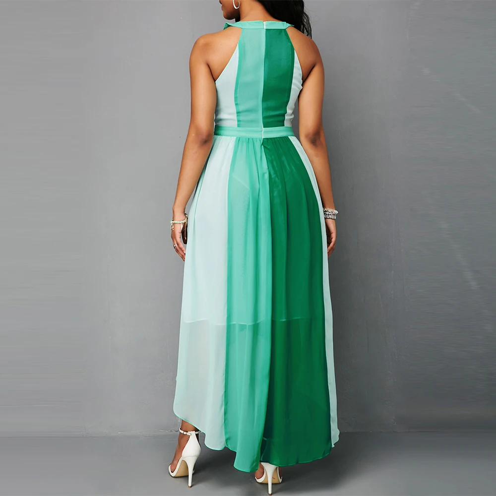 Chiffon Off Shoulder Contrast Color Patchwork Asymmetrical Maxi Dresses 5